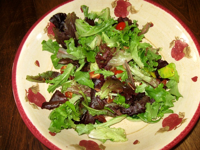 And there you go folks. A nice salad, complete with dressing and croutons, for you to try out sometime. Enjoy!